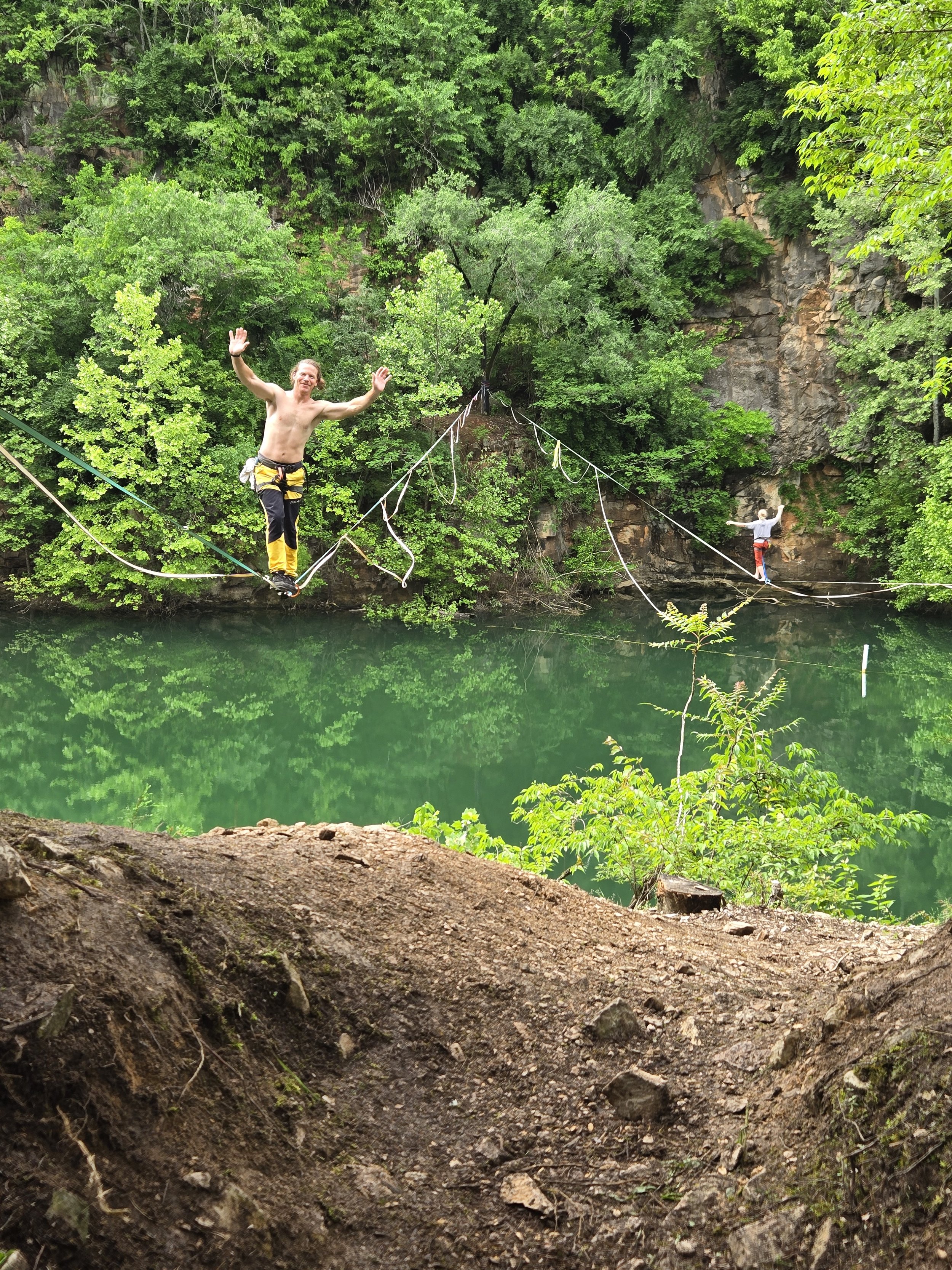 Featured Showcase on two high slacklines strung above the Quarry